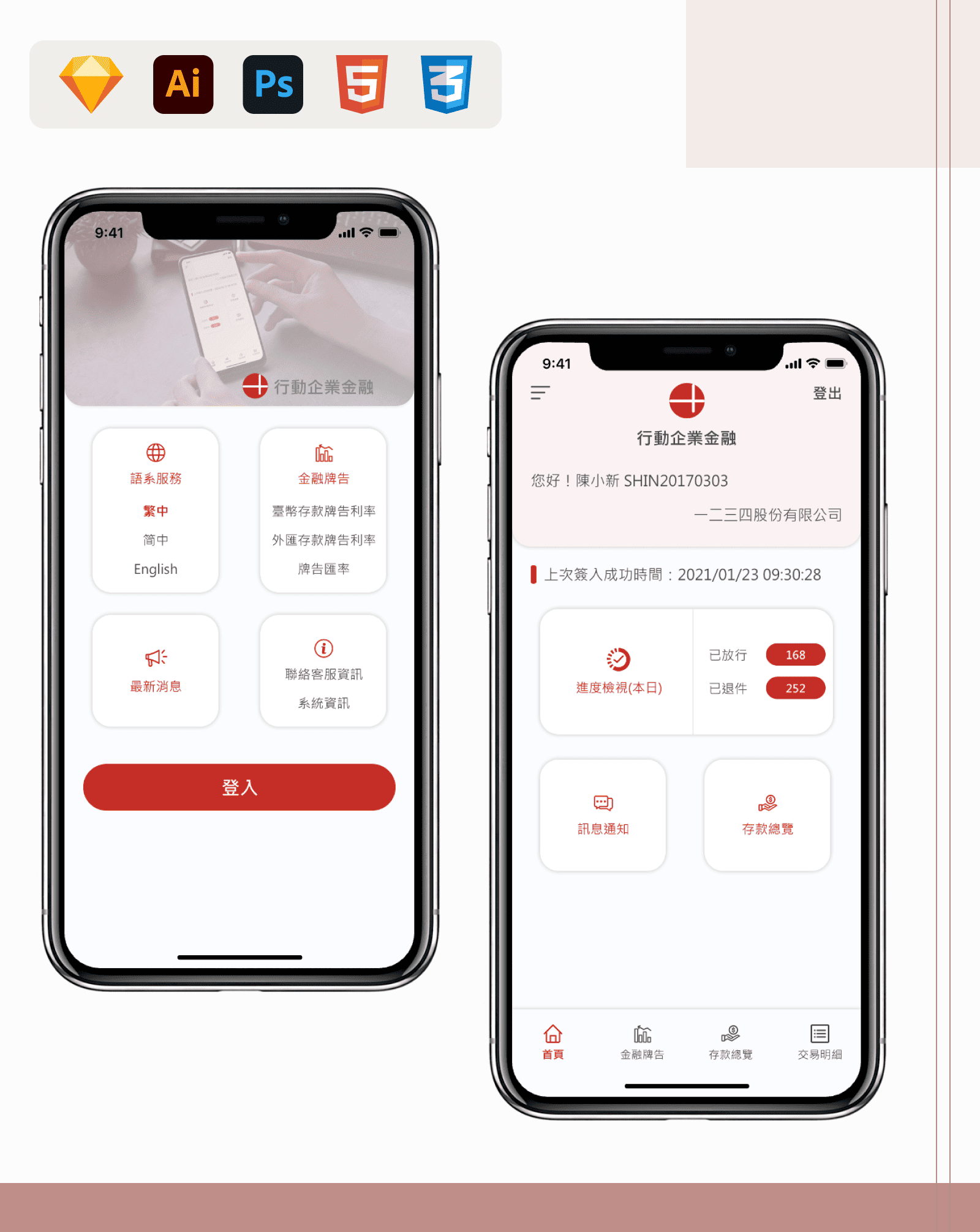 APP視覺風格翻新,企業金融核心功能重新規劃,以「快速切換」為操作模式,優化整體使用者操作流程,提升查詢效率,功能包含台外幣付款、帳務查詢、金融牌告、個人設定、客戶服務等等。